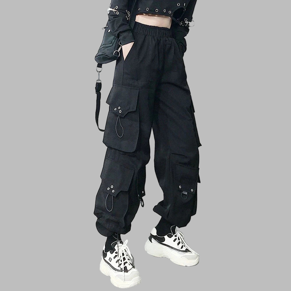 Μαύρο τακτικό παντελόνι punk grunge με τσέπες και αλυσίδες Δείτε επιλογές