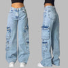 Μπλε τζιν cargo baggy με τσέπες σε rock στιλ