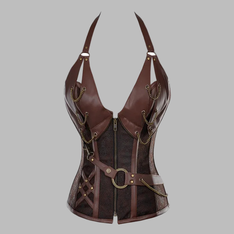 Καφέ κορσές steampunk με αλυσίδες και δερμάτινα λουριά