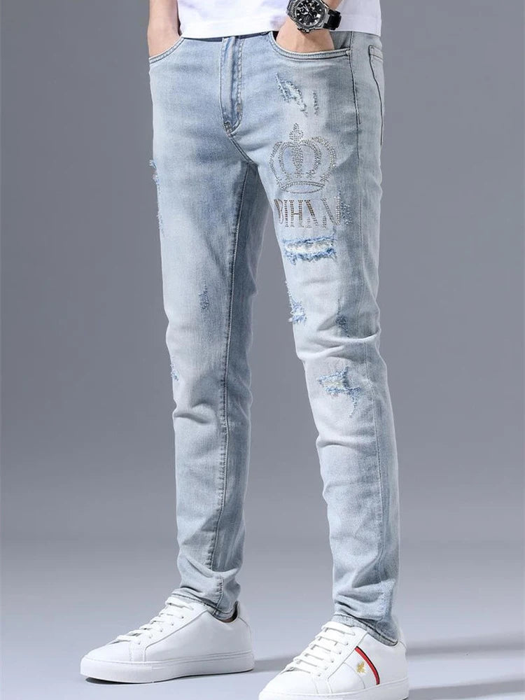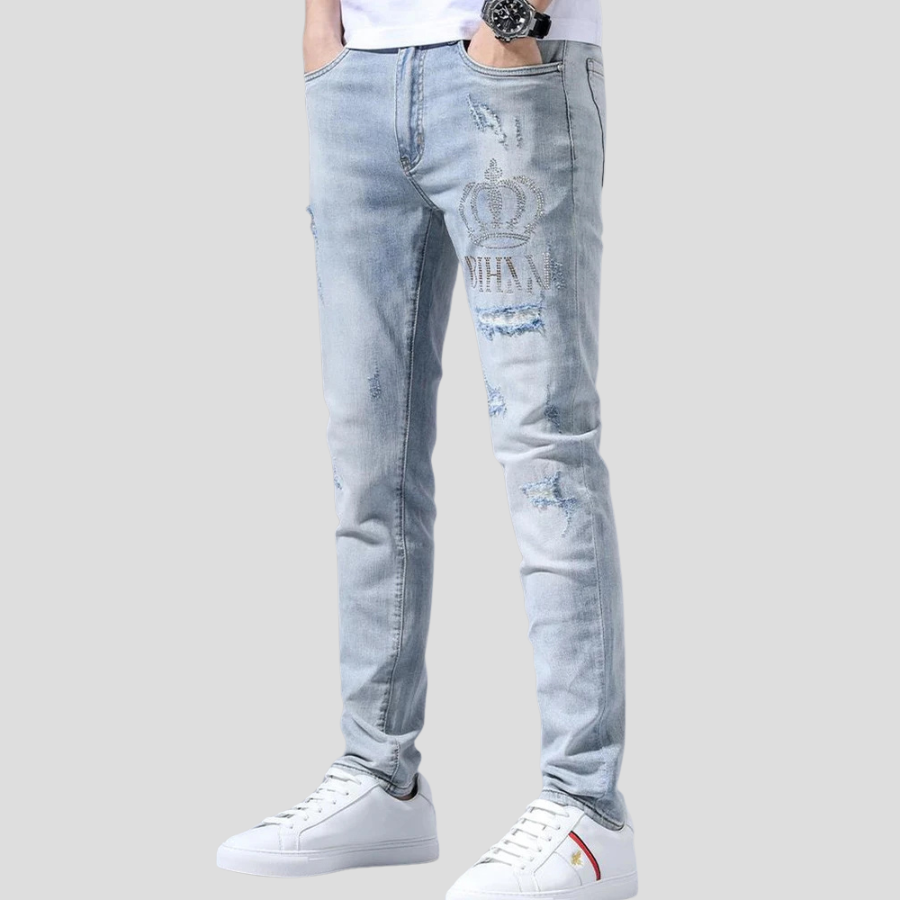 Τζιν Rock με σκισίματα και στέμμα σε ανοιχτό μπλε χρώμα
