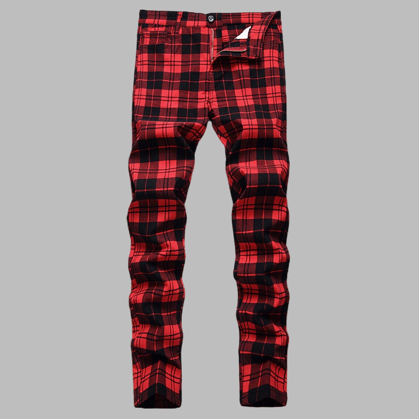 Μεταλλικό κόκκινο-μαύρο καρό παντελόνι rock vintage 4XL